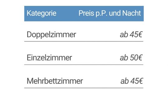 Alle Preise verstehen sich zuzüglich Kurtaxe (1,20 €).